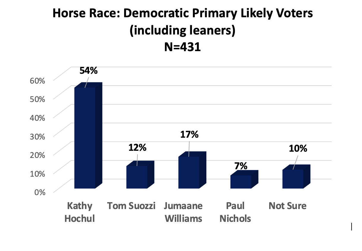 John Zogby, Founder and Senior Partner, Zogby Strategies said, “It would seem that Republicans have a golden opportunity to perform well in November. But thus far, Governor Hochul is in the drivers’ seat and the election is hers to lose. First, the GOP will have to unite then produce a compelling message that convinces they can do a better job. They are not there yet.”